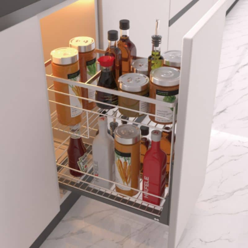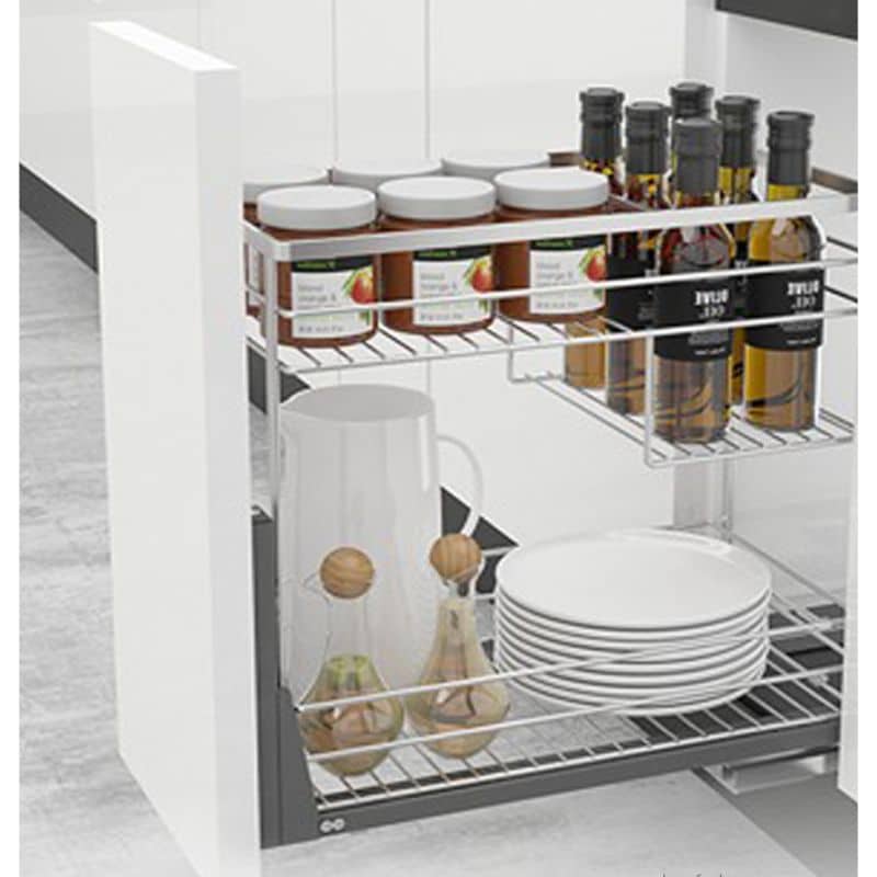 - Trọn bộ gồm: Bộ ray giảm chấn lắp đáy, 2 bas mặt trước, 2 bas giữ ray, khung rổ, 2 bas nhựa kết nối khung và rổ, 18 ốc lắp đặt.