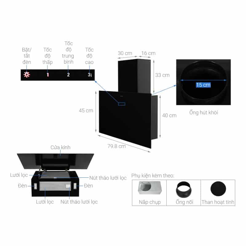 - Phụ kiện đi kèm: than hoạt tính