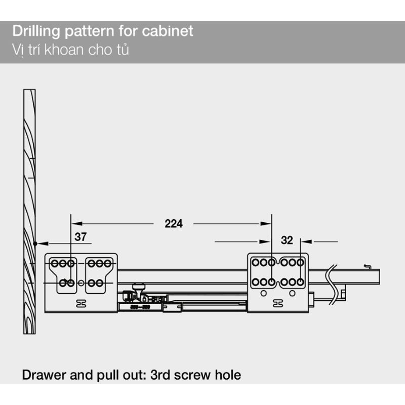 - Chiều cao ngăn kéo tối thiểu: 105mm