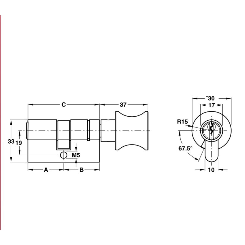 Thông số kĩ thuật của ruột khóa 1 đầu chìa, 1 đầu vặn đầu Hafele 916.08.916